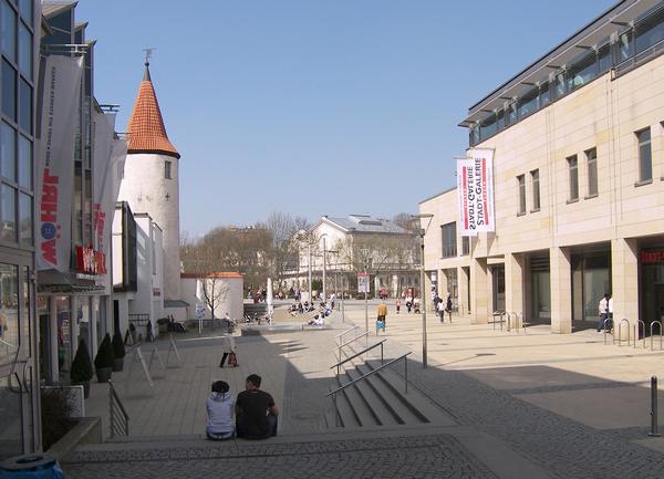 Syratal in Plauen.Der Syrabach hatte sich bis 10 m unter den Stadtmauerturm eingegraben. Seit dem großen Stadtbrand von 1844 tunnelt er das Areal.