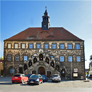 [R] Renaissance-Rathaus (1543, 1563?) mit später angebrachter überdachter Freitreppe